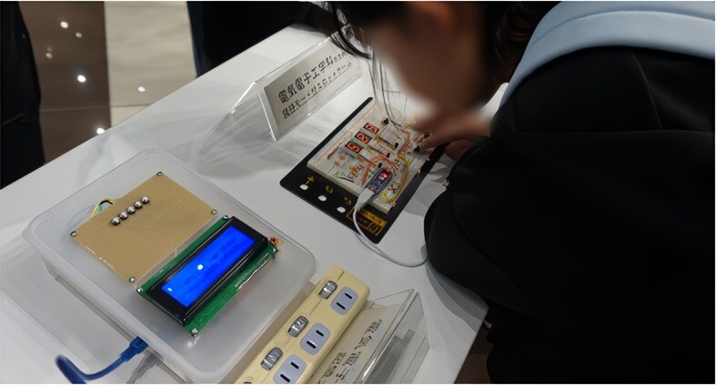 普段あまり触れることのない電子工作に戸惑いながらも、教員や学生のサポートを受けながら、一つひとつの工程に取り組んでいく様子が見られました。少しずつ形になっていく過程の中で、自然と表情がほころんでいくのも印象的です。