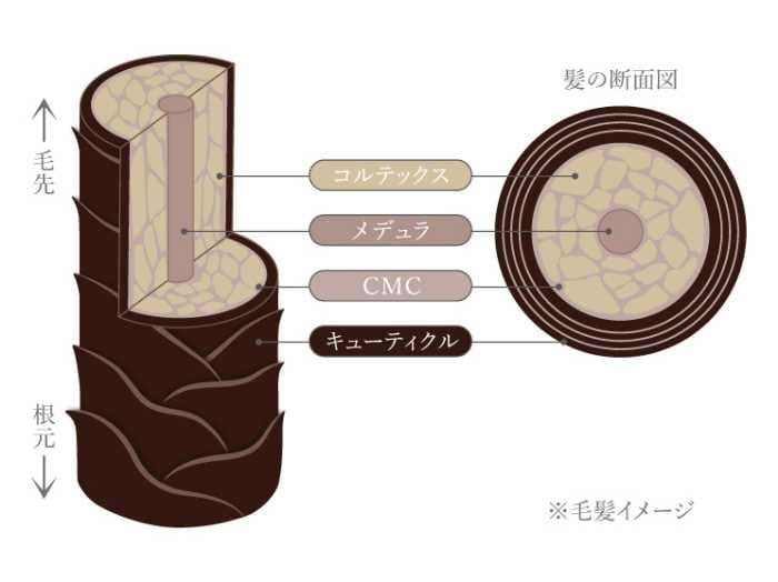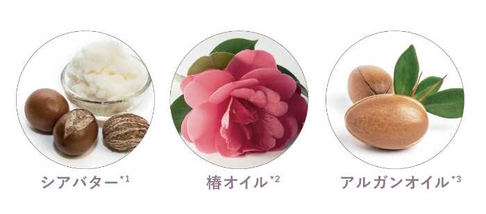 PPTリペア1によるタンパク質補給、ナノ化リピッドチャージ2での結合脂質ケア、ヒートコーティング成分3でのツヤ補強、そしてシアバターや椿オイルなど植物オイル4のうるおい。