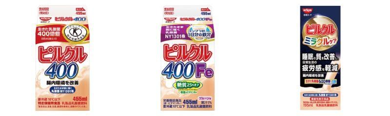 1つめの対象商品は、日清ヨーク「ピルクル400」「ピルクル400鉄分」(455ml)、「ピルクル ミラクルケア」(195ml)です。