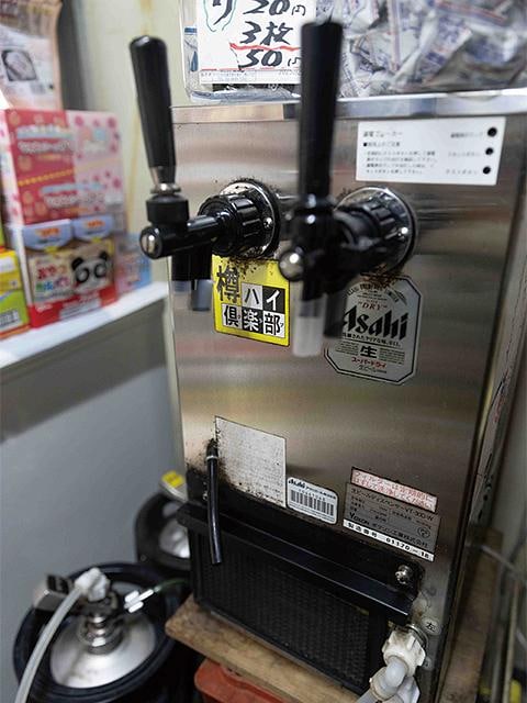 南砂団地の中にある古い酒店の前に、ビール箱でできた簡易椅子。ここを酒場と呼んでいいのか悩ましいが、昼を過ぎると住人が集まり、酒盛りが始まる。