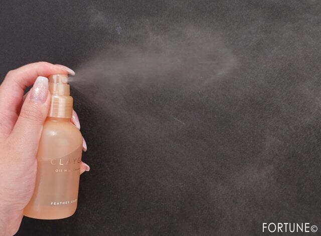 実際に使ってみてまず感じたのは、ミストの細かさ。ワンプッシュでふわっと広がる霧状のオイルが髪全体に均一に行き渡り、手ぐしでなじませるだけで自然にまとまります。