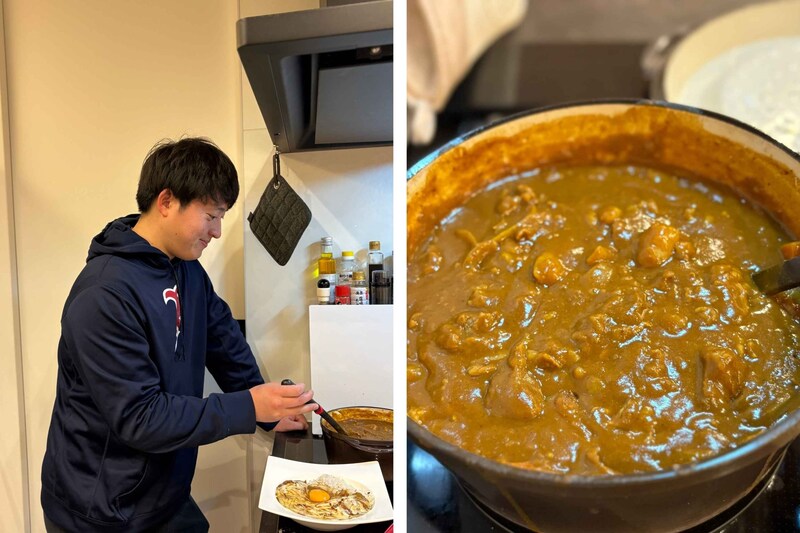 (左)調理中の夫・平松アナ (右)平松アナ作のカレー