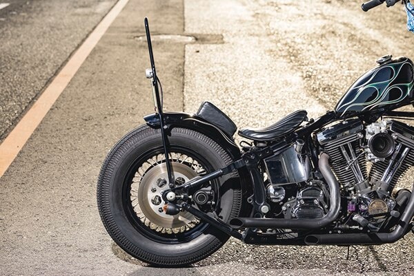 旧車チョッパーからM8スピードクルーザーまで、幅広く網羅する福岡の「ヴィダモーターサイクル」。FXRを筆頭にエボにも造詣が深く、これまでに数多くのエボカスタムを手がけている。