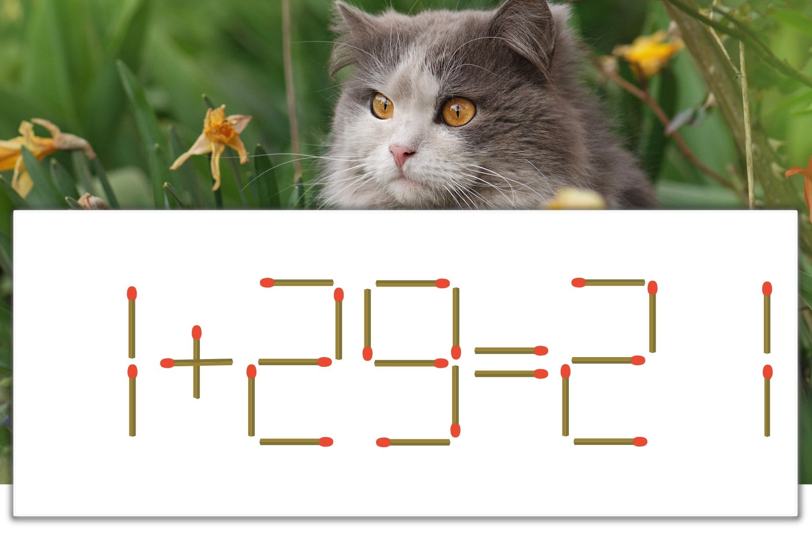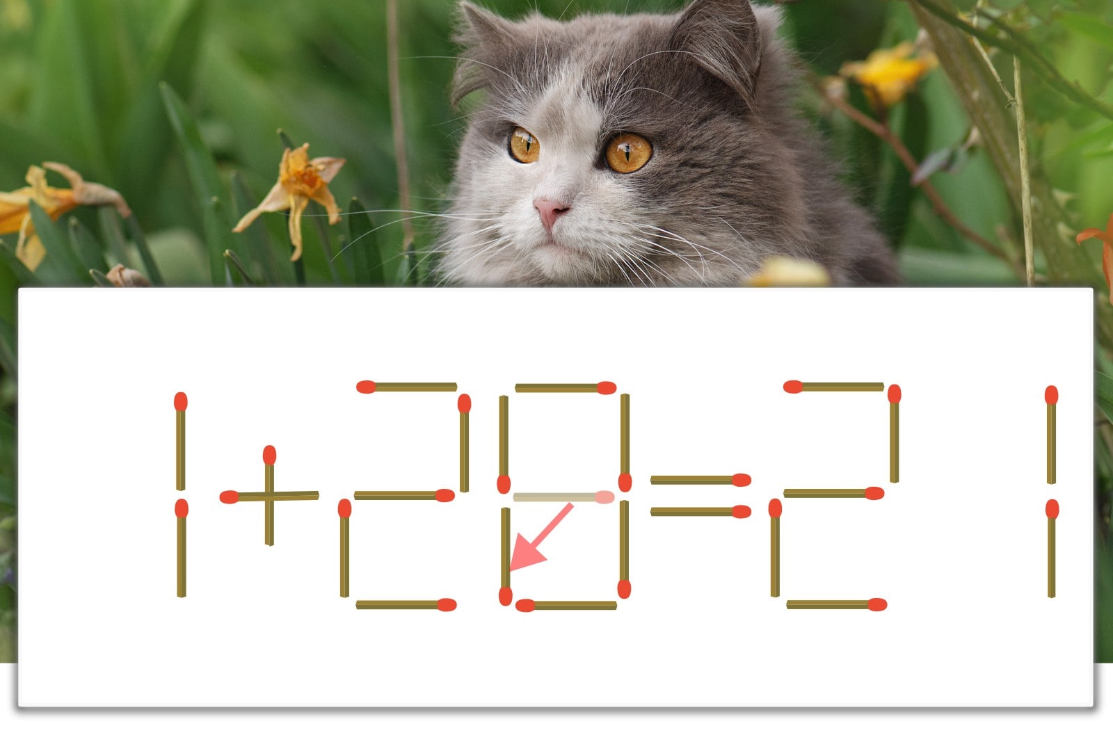 「9」を別の数字に変化させると答えが導き出せます。「9」のマッチ棒を1本移動して、「9」を「0」にしてみましょう。すると、「1+20=21」が成立します。