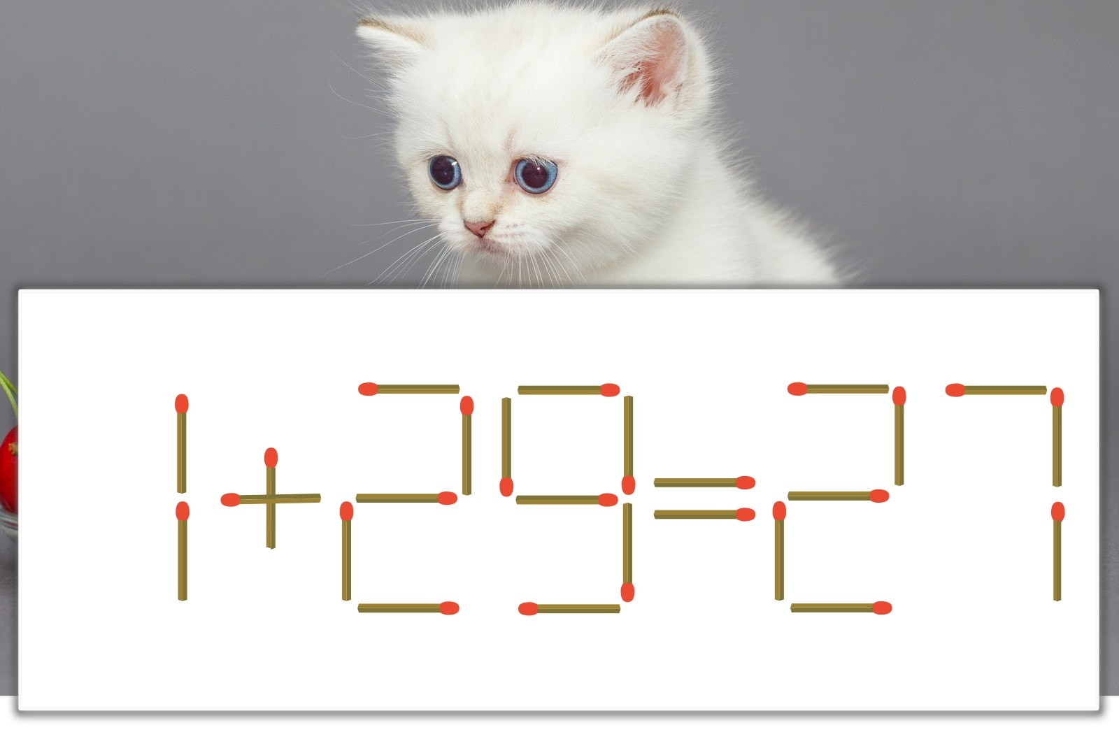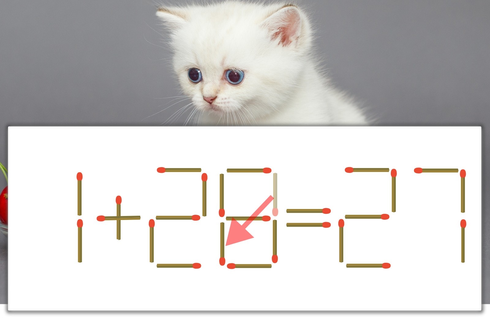 「9」を別の数字に変化させると答えが導き出せます。「9」のマッチ棒を1本移動して、「9」を「6」にしてみましょう。すると、「1+26=27」が成立します。