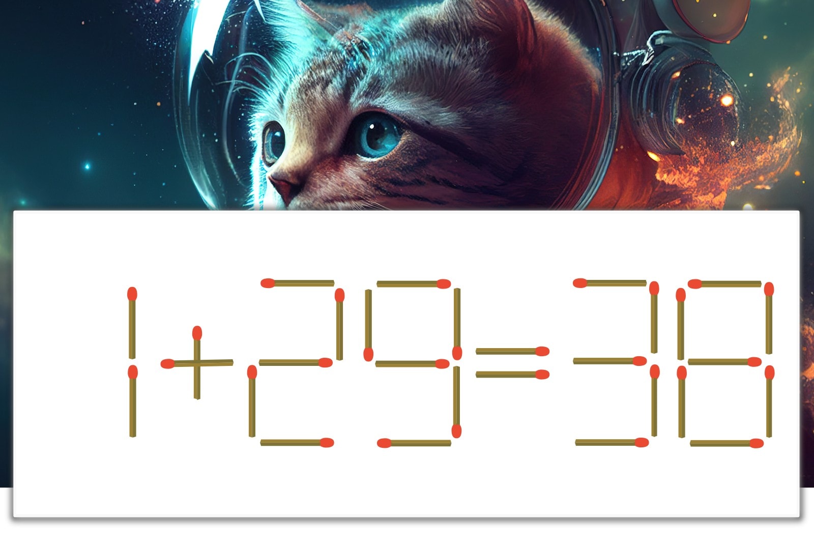「8」を別の数字に変化させると答えが導き出せます。「8」のマッチ棒を1本移動して、「1」を「7」にしてみましょう。すると、「7+29=36」が成立します。