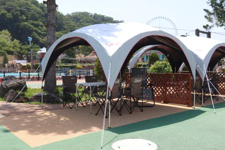 冷暖房完備で利用者専用シャワーなどが備え付けの「ロイヤルレスト席」をはじめ、アウトドアブランド「コールマン」とのコラボレーションした「ビーバー席」など、屋外プールエリアの有料休憩席をお得な料金で販売する。