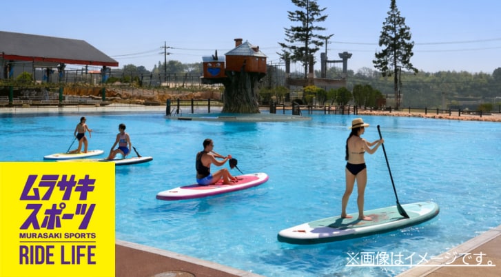 アクアチューブ体験では専用のチューブに入って水面を自由に動き回ることができ、子どもから大人まで気軽に楽しめる。また、5月2日(土)は、ムラサキスポーツ主催の「SUP体験会」を開催。スタッフのレクチャーがあるので、初心者や子どもでも安心して体験できる。