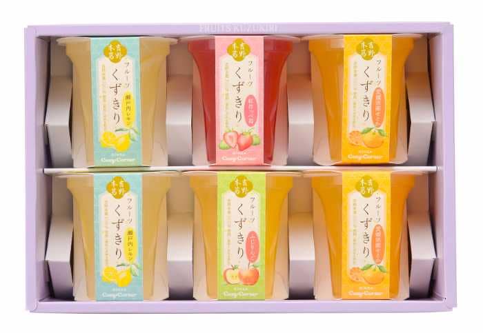 「フルーツくずきり(6個入)」は3,024円(税込)で、瀬戸内レモンや愛媛県産せとかなどの味を堪能できます。