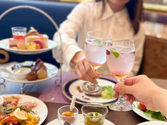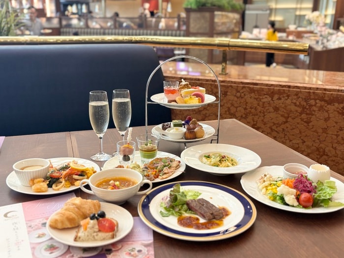 テーブルを埋め尽くす、華やかなお料理。この日は平日のランチ女子会で「ゆったりビュッフェプラン」を利用しました。通常120分制のところ平日限定で”時間無制限”ランチは最大270分!