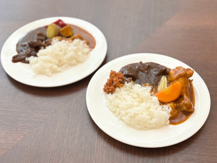 ビュッフェで楽しみにしているカレー。「バターチキンカレー」と「ビーフカレー」のあいがけにしました。異なる味わいを一度に楽しめるアレンジも、ビュッフェの醍醐味ですね。