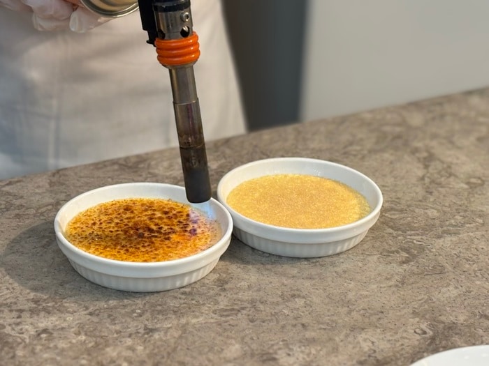 スイーツも出来たてをお届けする”パティシエキッチン”「ぜんざい風苺のクープ」や、目の前でキャラメリゼする「クレーム・ブリュレ」、シェフたちのパフォーマンスにも目が離せません。