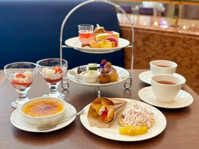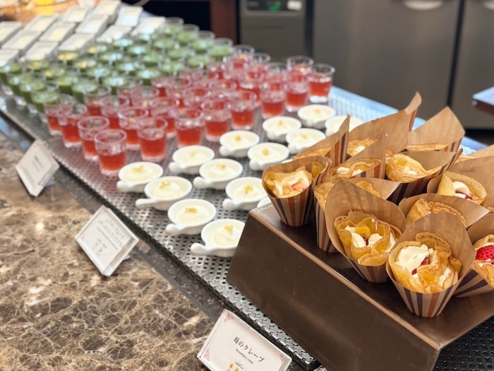煌びやかな器に入った「レアチーズムース レモンのコンフィとともに」や「苺のクレープ」など、全種類制覇したくなるくらい、魅力的なものばかり♪