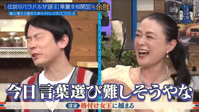 このエピソードにかまいたちの濱家隆一は、「たしかにあの番組のあのコーナーの国⽣さん、おもろかったっすもんね、めちゃくちゃ」と納得。すると国⽣からすかさず、「今面白くないみたいに言わないで!」「過去形にしましたよ、今!」と嚙みつかれる事態に。“格付け女王”国⽣に捕まってしまった濱家は、「言ってない……」「今日なんか言葉選び難しそうやなぁ……」とタジタジになった。