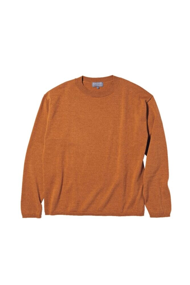 メリノウールの膨らみとコットンの優しい肌触りを兼ね備え、メランジ染めで素材の表情を引き立てた。防縮糸を使用しており、手洗いも可。3万6300円(マーガレット・ハウエルTEL03-5785-6445)