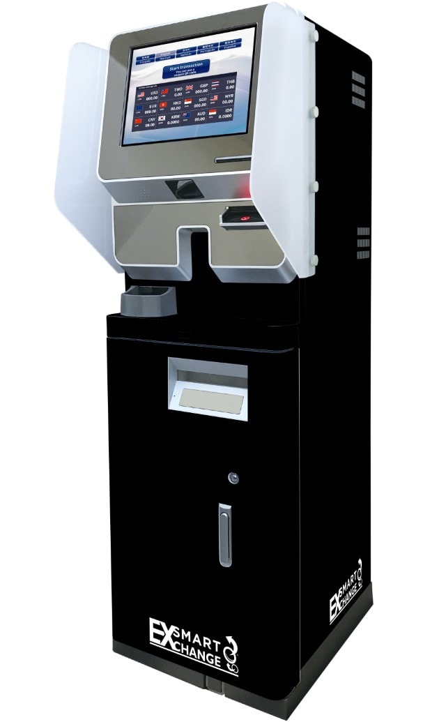 12通貨の外貨紙幣から日本円へ、簡単な操作により最短約30秒で両替可能な自動両替機です。