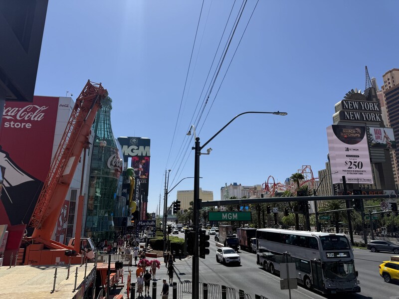 ストリップ大通り沿い。今回訪れた場所で、14カ国のトレイが有料で体験できる。