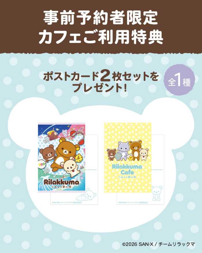 また事前予約(税込715円/1名)で利用しメニュー注文をすると、「ポストカード2枚セット(全1種)」をプレゼント。※画像はイメージです。特別な来店記念として嬉しい特典です♪