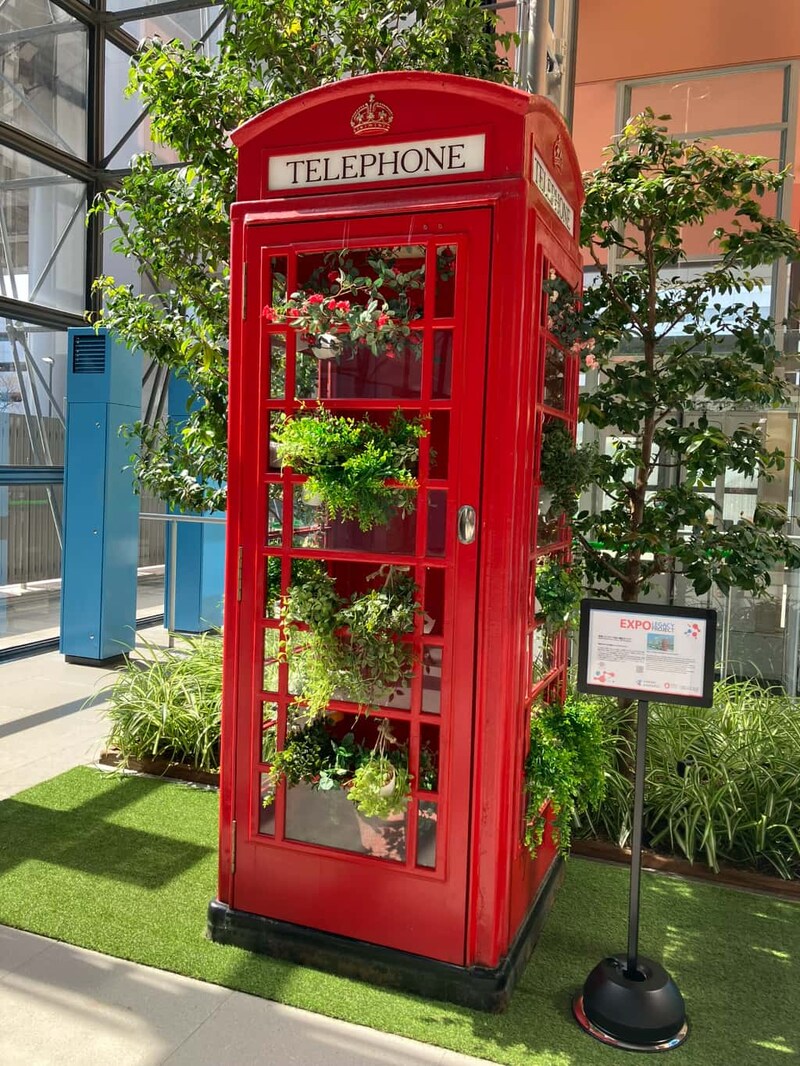 今回、関西国際空港に移設された「赤い電話ボックス」は、英国の街中で実際に使用されていたもの。万博会場ではアイビーなどの植物で装飾され、英国を思い起こす美しいフォトスポットとして人気を集めていました。