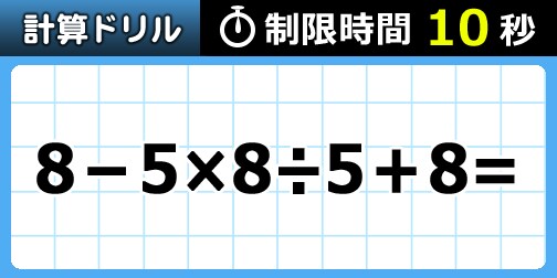 【制限時間は10秒】うっかりすると間違えちゃうかも?!「8-5×8÷5+8」ちゃんと間違えずに正解できるかな?