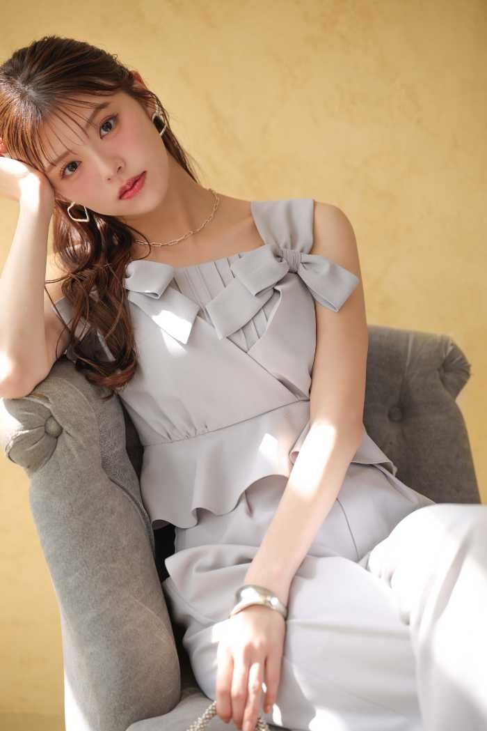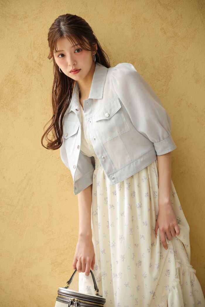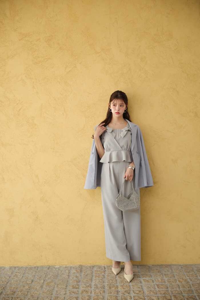 LOOK1ではジャケット(10,890円税込)×ワンピース(14,300円税込)×クリップ(1,980円税込)の華やかなティアードスタイル。