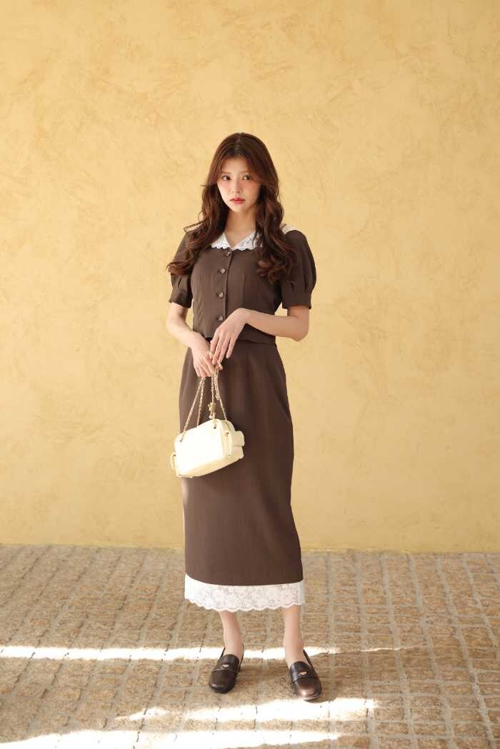 LOOK3はブラウス(9,790円税込)×スカート(12,100円税込)のレースセットアップ。