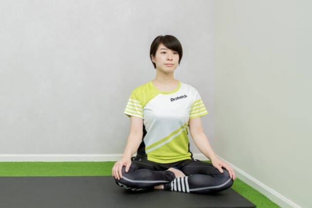 (1)壁の横にあぐらの姿勢で座る