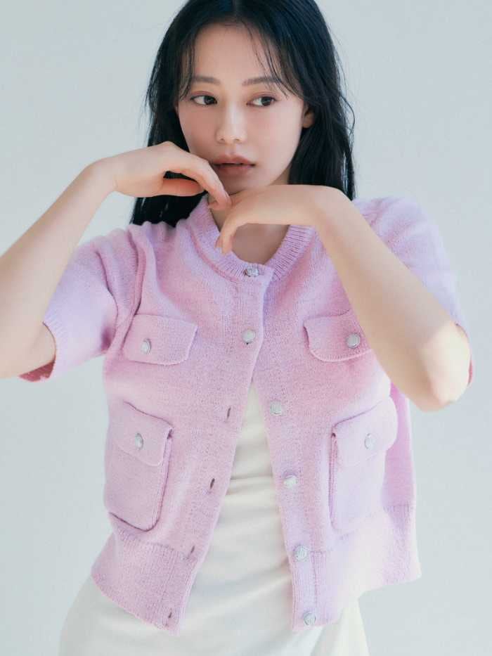 Style02ではカーディガン(9,350円税込)とワンピース(14,850円税込)の組み合わせで、軽やかさと女性らしさを両立。