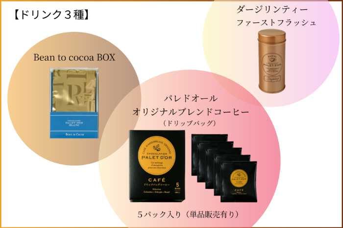 さらにドリンクは「オリジナルブレンドコーヒー」(1,458円税込/単品292円)、「Bean to cocoa BOX」(1,600円税込)、「ダージリンティー」(1,782円税込)を展開。