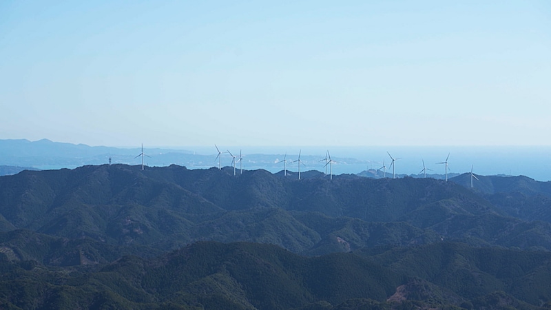 ようやく標高523mの真妻山の山頂に到着。そこにはグルッと一周360度を見渡せる絶景が待ち受けていました。手前の山並み越しに海岸線がはっきりと眺められ、有名な白浜海岸の向こうには紀伊水道、そして太平洋が広がっています。山も海も自慢の和歌山県の面目躍如といったところでしょう!