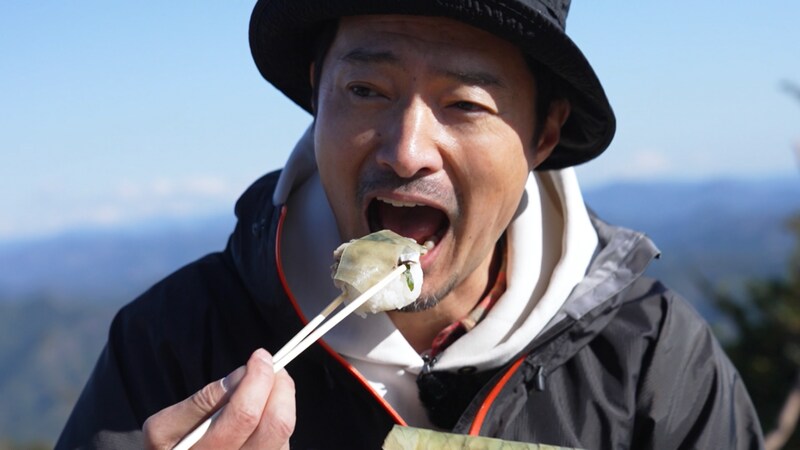 そんな山も海も楽しめる今回の頂きメシは、脂の乗った肉厚のサバ使った「あんちんの鯖寿司」、そして和歌山といえばの柑橘・八朔(はっさく)。鯖寿司は薬味の紫蘇や生姜も和歌山産にこだわった逸品で、じんわり汗をかいた登山の後には、酢飯の香りがたまりません。子供の頃から大好きだという八朔のお味は、、、「うまい!さすが和歌山県、衝撃的でした!」とのこと。