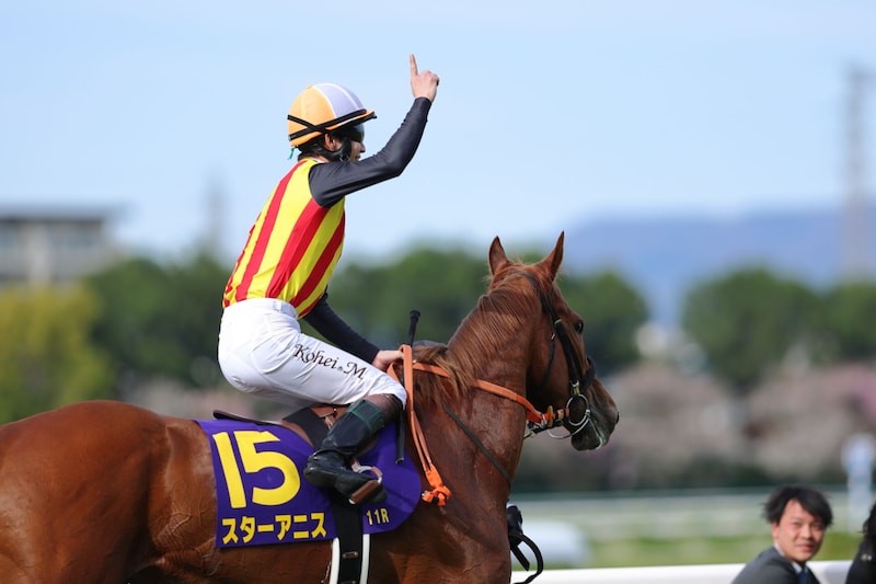 「もう最高に嬉しいです。混戦ではあったと思うんですけれども、やっぱり2歳女王ということで、自分の中では本当に負けられない戦いでしたし、絶対勝つんだという、そういう気持ちでした。(レースを終えて)ホッとしてます、今は。今日の芝の傾向とかを見てても、やっぱりあまり外からというよりは、前で粘り強い競馬とかもしていたので、そういうところも意識してました。ただ、馬のリズムを1番に考えてはいたので、馬を信じて、馬のリズムで行けば負けないなと思っていました。直線向いた時も手応え十分で、追い出しを我慢する余裕もありましたし、抜けてからは力強い走りで後ろを離してくれて、強い勝ち方だったなと改めて思いますね。(スターアニスに)本当にありがとうという声をかけさせていただきました。今日1冠目ということで、まずはその意味もあって指1本立てました。これからどういったローテーションになるかわからないんですけれども、本当に強かったですし、ますます楽しみだなと思いますね。こうして強いスターアニスを見せることができて本当に嬉しく思います。これからまだまだ活躍できる馬ですので、これからもどうぞ応援よろしくお願いします。今日はありがとうございました」