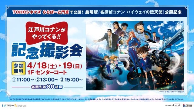 TOHOシネマズららぽーと門真で4月10日(金)からの映画『名探偵コナン ハイウェイの堕天使』の公開を記念して、撮影会を開催。コナン君と一緒に写真撮影ができます!