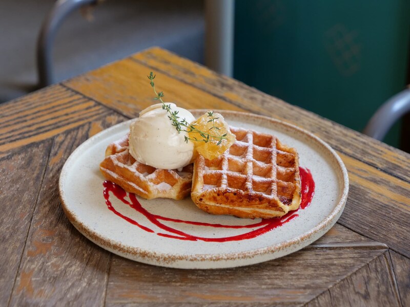 17年前、「パンとエスプレッソと」で生まれた食パン「ムー」が、新たにオリジナルワッフルとして登場。バターの香りをまとい、外はカリッと、中はふわもち。図書館という静かな空間の中で、“カコとイマ”をつなぐワッフルを味わってみて♡