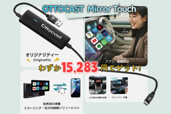 世界で初めて、車載機器からスマートフォンを操作できる製品--オットキャスト Mirror Touch