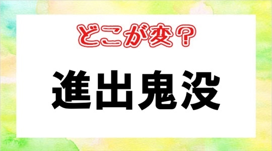 「進出鬼没」この漢字の中にひとつだけ間違っている文字があります。一見すると正しいようにも見えますが、どこかが違う……。さあ、わかるかな?