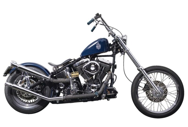 オーナーの平尾さんが「チョッパーにしてください!」と持ち込んだヘリテイジをカスタム。ショベルなどの旧車っぽさを意識したというこのマシンは、6インチオーバーのフォークやアップスイープしたマフラーなど、チョッパーを意識しつつ塗装で大人な雰囲気を演出。玄人好みの一台に。