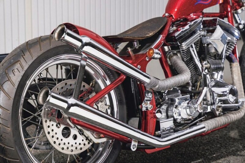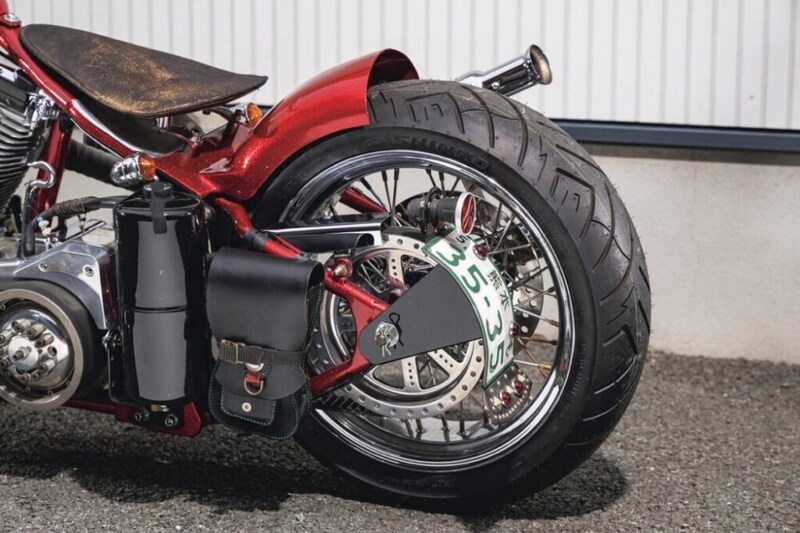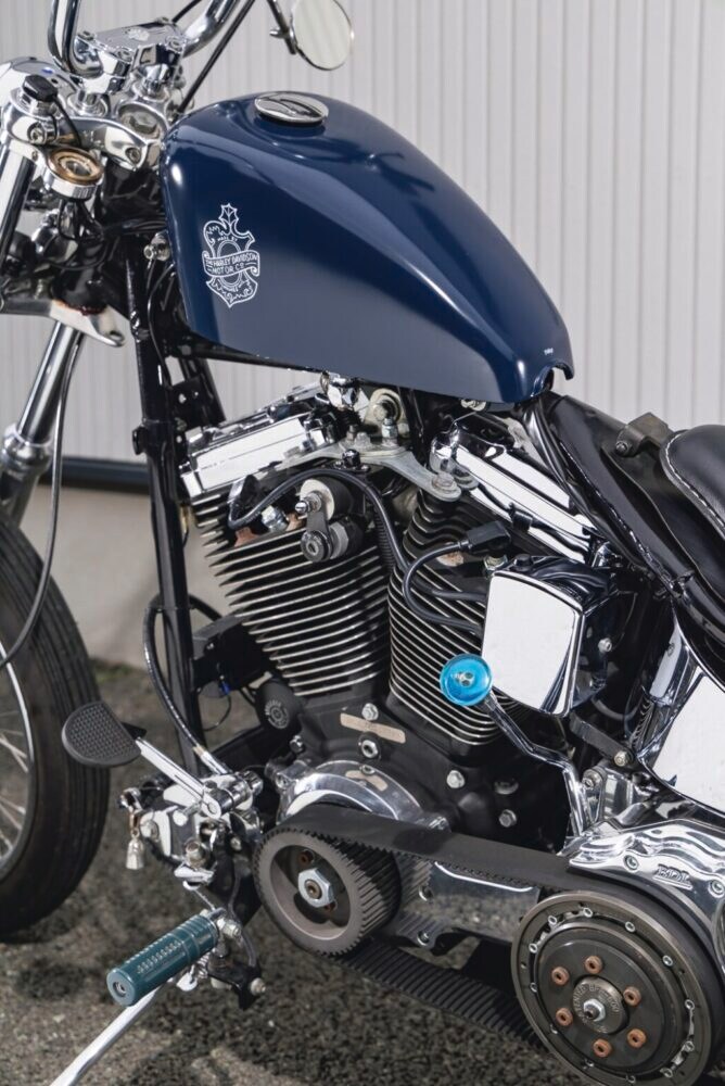 ディーラー勤務時からコツコツとカスタムを続けており、木村さんいわく「まだ未完成」というこのマシンは89年のヘリテイジクラシックがベース。90年代チョッパーを彷彿とさせるスタイルやペイントワークが印象的だ。木村さん自ら手作業でポリッシュしたというエンジンの輝きがまぶしい!