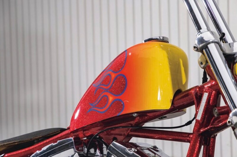 タンクはスポーツスタータンクを幅詰め。リアまわりには当時最大だった200ワイドキットを組んだ。オイルタンクはシート下から移設、トラックのホーン用エアタンクをベースに作ったというワンオフオイルタンクを左サイドに配置する。今後はシートや外装類のカスタムを計画中。