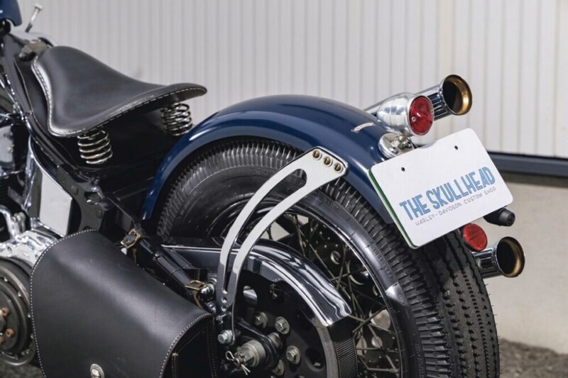 ネイビーを基調としたマシンに、同系色の差し色としてグリップやシフターにブルーを配色。スカルを閉じ込めたような愛らしいシフターは木村さんがレジンで作った一点モノだ。美しいカーブを描くようなリアのフェンダーブレースの造形に、メタルワークとセンスの高さを垣間見る。