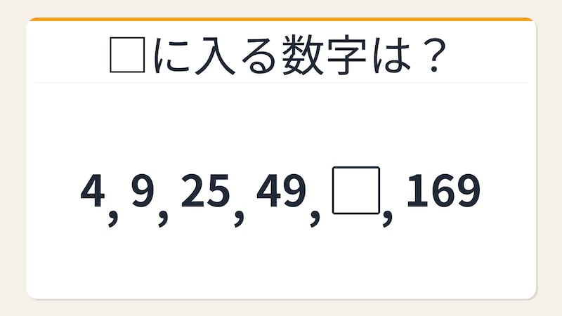 3×3のマスに数字が並んでいますが、1か所だけ空欄があります。隠された法則を見抜いて、空欄に入る数字を当ててください!