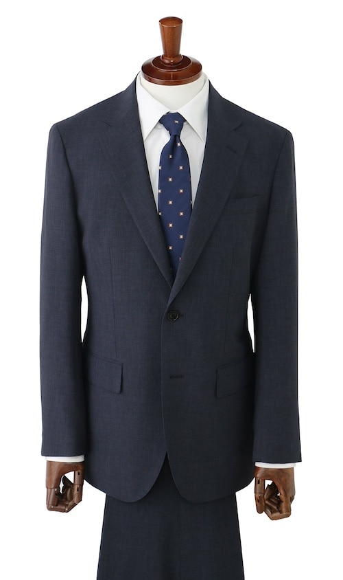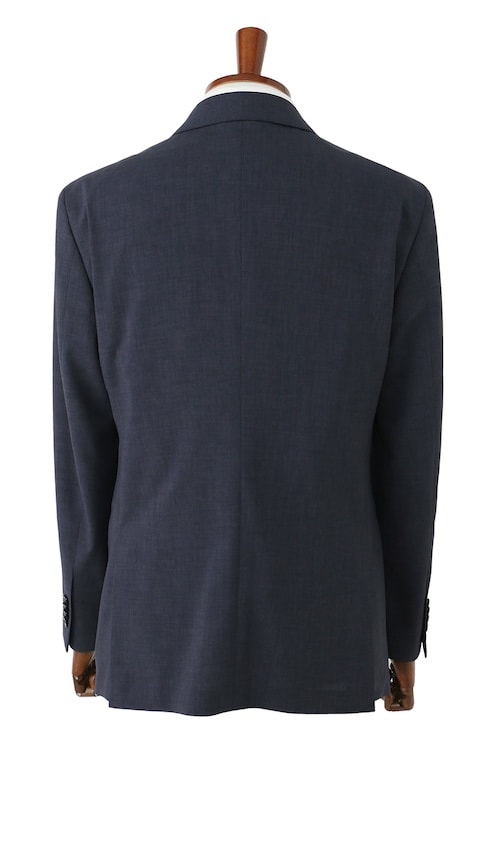 ジャケットは2つボタンシングル、肩パットを使用せず毛芯2層構造の「ソフトコンストラクション」で、軽く柔らかな仕立て。