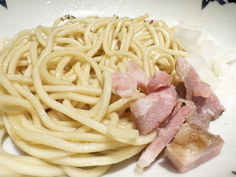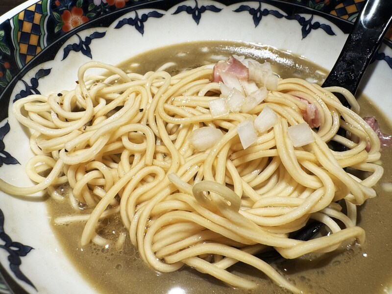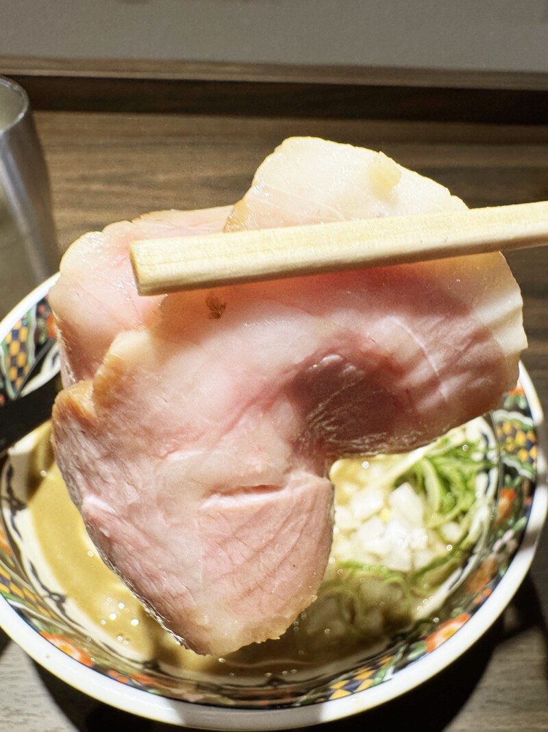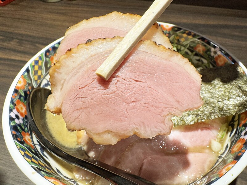 そして鴨と豚のチャーシューも極まっていた。これはそのまま食べても絶品で肉汁の旨味濃厚ではあるが、たっぷりと濃厚煮干汁に浸して食べるとベスト。煮干しがあふれる肉汁の旨味と甘味をぶち上げてくれるのである。