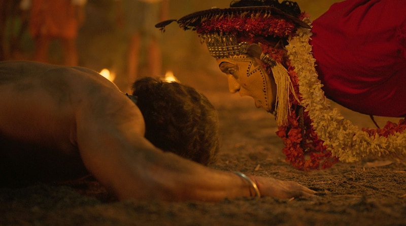 このたび公開された日本版オリジナル予告編では、森林を管理するムラーリ保安官の「儀式が始まった」というセリフに併せて、一大事である儀式ブータ・コーラが始まる様子が映し出される。輪唱形式で奏でる祭り歌のリズムに合わせて、村人たちが神降ろしの祭礼を楽しむ瞬間が切り取られていき、自然と共に生きる住民の生活様式がチェックできる。しかし「シャリン」という音が鳴ると、自然保護を理由に村人の土地を押収しようとする森林局の思惑と、先祖の土地を守ろうとするシヴァを筆頭にした住民との軋轢が勃発して、一触即発のムードが漂っている。