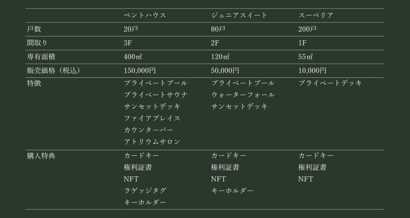 権利証書にはNFTを付与し、デジタル技術を活用することで各住戸の「所有権」を明確に証明し、唯一無二の資産として保有できる仕組みを採用しています。