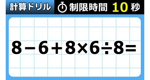 【問題】【制限時間は10秒】うっかりすると間違えちゃうかも?!「8-6+8×6÷8」ちゃんと間違えずに正解できるかな?