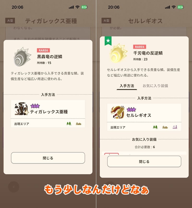そして、ティガレックス亜種のランスをそれぞれG10-5をめざしてコツコツRARE6素材を集めていく予定だ。