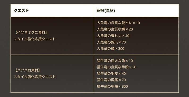 →基本報酬の1枠目並びに2枠目の素材個数が2個に増加