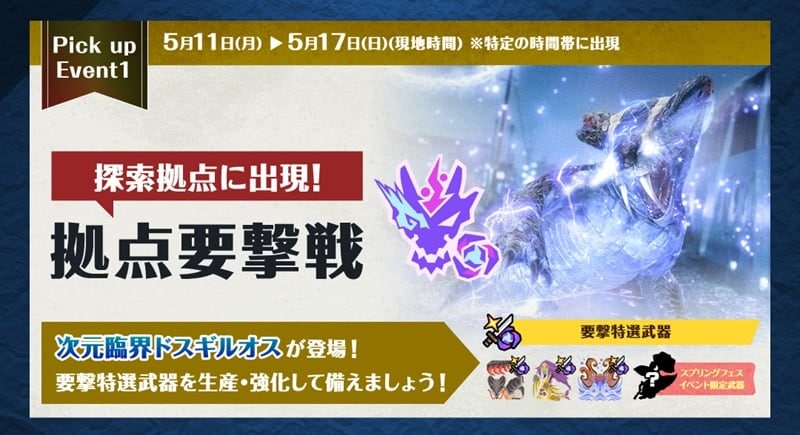 現在襲来している次元臨界リオレウスの拠点要撃戦が4月19日(日)を持って終了。