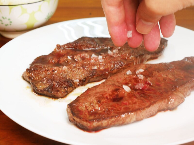片面をガッツリと徹底的に焼いて、こんがり焼けたら片面を焼く。焼き色がついたところで改めてひっくり返して焼き、できあがり。